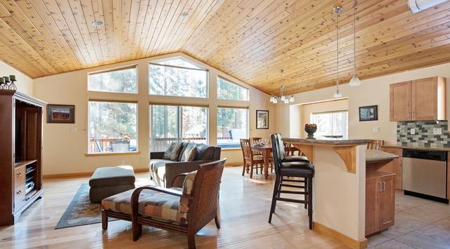 Indulge in a Lake Tahoe getaway at Golden Pine. With parking for 2 cars in the garage and 2 vehicles in the driveway, it’s easy to explore the area year-round. Northstar Ski Resort is only 7 miles away, Palisades Tahoe is a 30-minute drive, and King’s Beach is right down Bear Street. Book today!