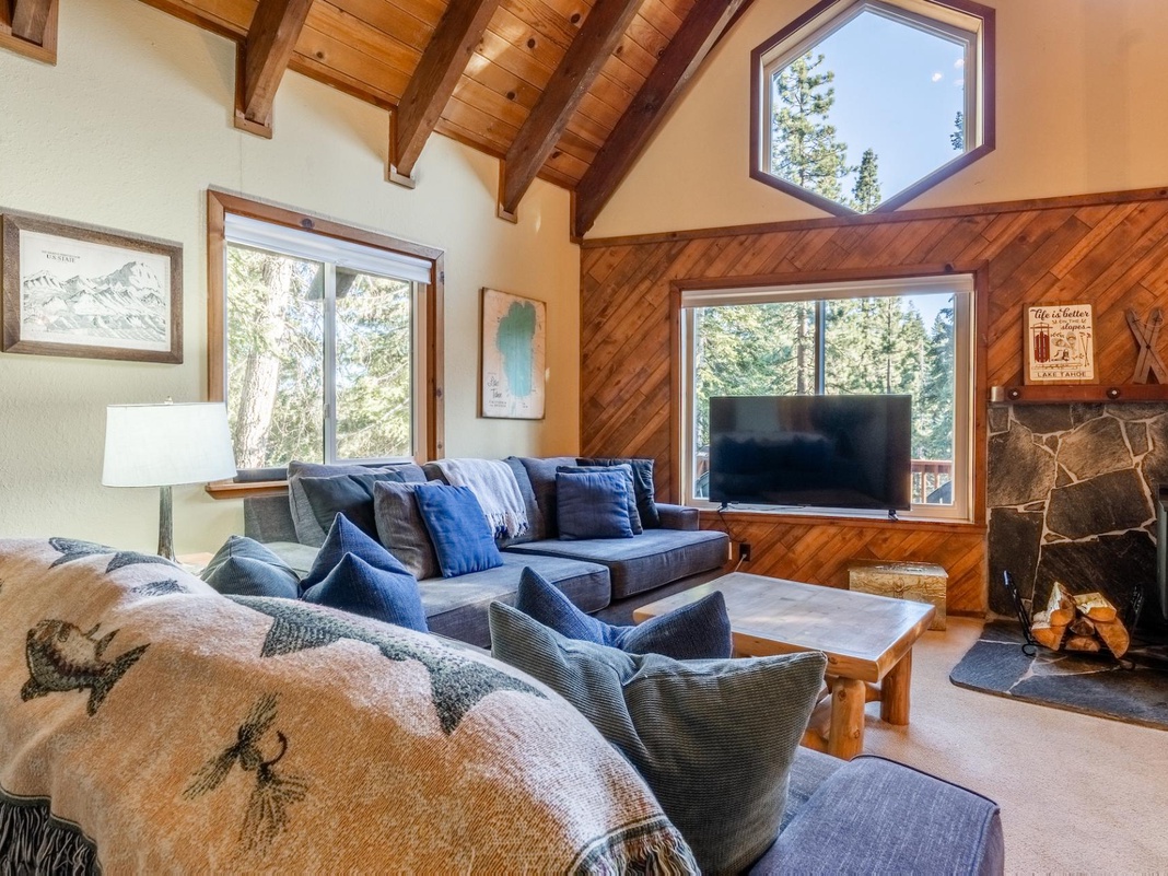 Details: Adventure and natural beauty are always in season at Pinetree Paradise, a peaceful 4-bedroom, 3-bathroom cabin that sleeps 10 near the North Shore of Lake Tahoe. Experience sunny beach days, on-the-water fun, and gorgeous hikes in the Summer. When Winter rolls around, Northstar Resort is only 6 miles away for skiing and snowboarding. Guests will love this pet-friendly retreat’s stunning forest views, expansive back porch, and charming fireplace.