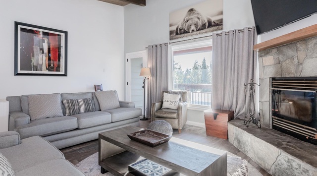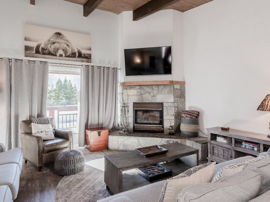 DETAILS: Escape for year-round adventure at Chateau D’Oex 8. Tucked among the Sherwin Mountains on beautiful wooded grounds, this 3-bedroom, 2-bathroom escape sleeps 7 guests and is a short stroll from the Village at Mammoth. In the Summer, explore the scenic trails, hit the golf greens, or enjoy a movie under the stars. When Winter comes, take advantage of Mammoth Mountain’s 3,500 skiable acres. With a cozy fireplace, mountain views, and access to a shared hot tub and sauna, this lovely townhome offers an unforgettable mountain retreat.