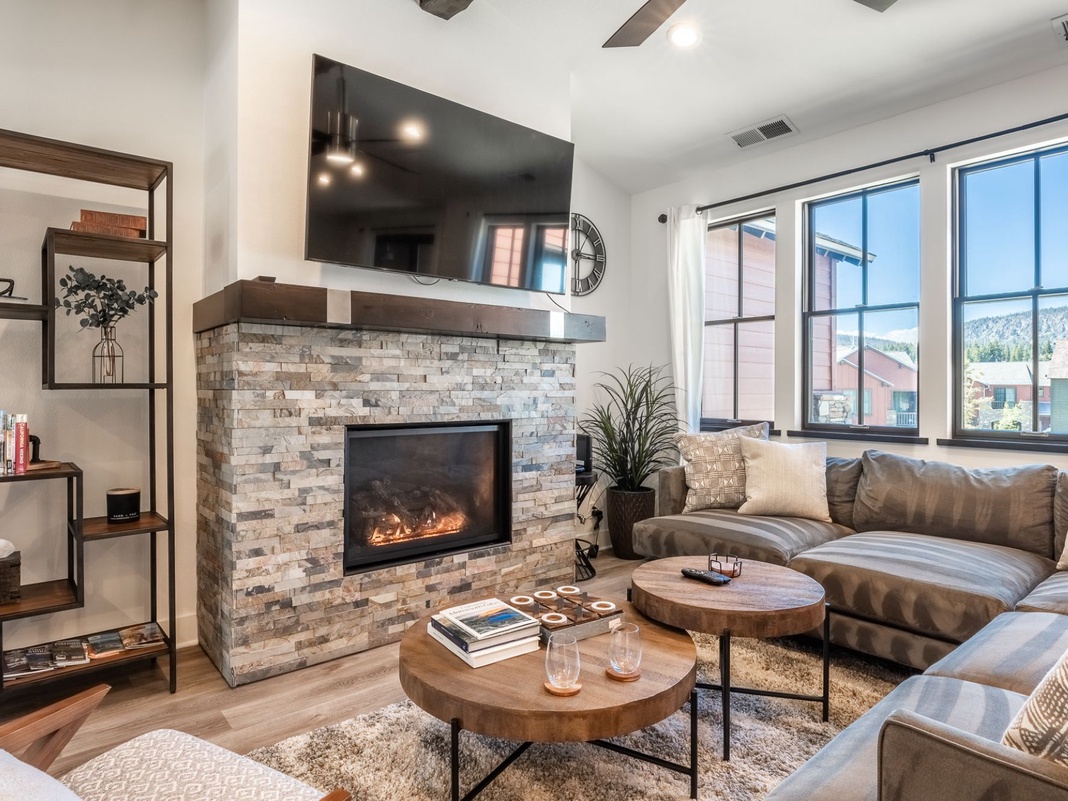 DETAILS: Scenic beauty and all-season adventure await at Creekhouse 1353, a 2-story townhome with 3 bedrooms and 2.5 bathrooms, sleeping 6 in Mammoth Lakes. Enjoy access to the community recreation center and hot tub, as well as a prime location 1.5 miles from Eagle Lodge. In the Winter, carve down Mammoth Mountain’s 3,500 acres of skiable terrain, and when Summer hits, there’s plenty of fun on the trails, greens, or water. Guests will love warming up by the gas fireplace and sipping cocktails while enjoying the balcony’s breathtaking views.