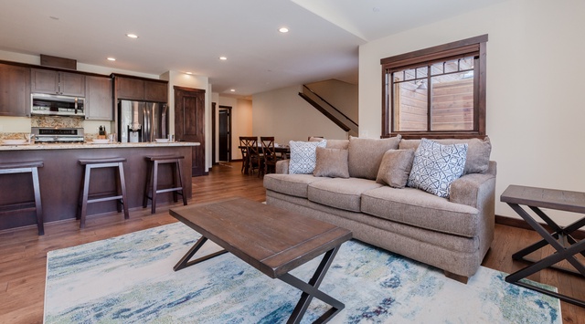 DETAILS: Tucked in a picturesque complex near Canyon Lodge, Mountainside 5 is a 3-bedroom, 3-bathroom townhome that comfortably accommodates 8 guests. From skiing, tubing, and ice skating in the Winter to rock climbing, hiking, swimming, and golfing in the Summer, every day of the year in this California town promises big adventure and beautiful vistas. Guests will love ending delightful days gathering with friends and family on the deck or around the fireplace.
