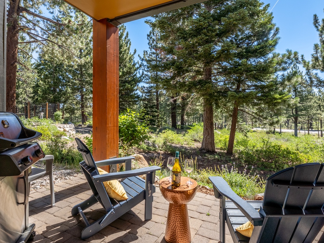 A charming entryway welcomes guests to this single-story retreat. Step inside and drop off coats and boots at the hall tree before venturing into the spacious, south-facing great room. Large wood-trimmed windows fill the space with natural light, offering a bright, cheery ambiance for relaxing and unobstructed views of the tree-lined Sierra Star Golf Course. The living area includes 2 comfy sofas and a lounge chair for gathering around the gas fireplace and Smart TV. The fully equipped kitchen features GE appliances, granite countertops, and an open layout with a 2-stool breakfast bar—perfect for sipping coffee or wine while prepping meals. When it’s time to dine, a wooden table for 6 provides plenty of room for the whole group. Head out the sliding glass door to discover an inviting patio with tranquil views and a gas grill. Enjoy a morning coffee with the sunrise or an afternoon break watching the wildlife scurry around the golf course. At bedtime, guests can retire to the primary bedroom with a king bed and private bathroom, or the guest bedroom with a queen bed and access to the shared bathroom. Both bedrooms feature Smart TVs for easy entertainment. The living area’s Queen sleeper sofa provides additional sleeping accommodations.