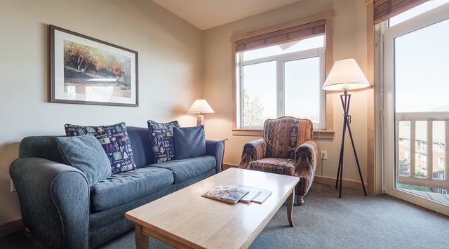 - Living Area: Queen Sleeper Sofa