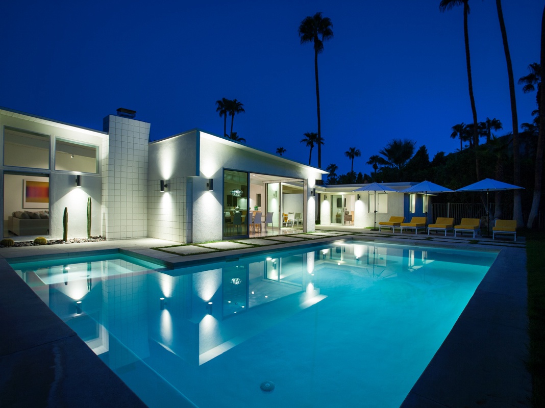 La Paloma Palms brings resort style amenities to this private Palm Springs vacation home. There is a covered patio between the main house and the casita, as well as a saline pool with an integrated tanning shelf and custom spa. Additionally, an outdoor living room has a propane grill and bar sink.