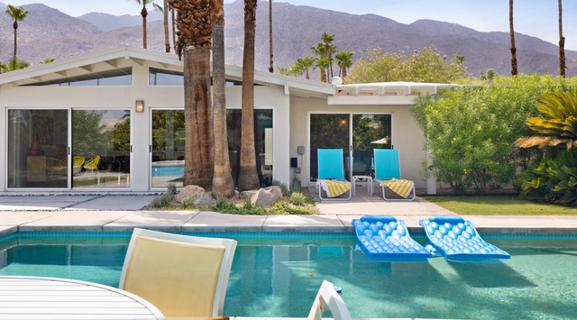 A classic mid-century modern home in the Warm Sands neighborhood, Sunny Lands sits less than a mile from downtown Palm Springs and within walking distance of its famed antique shops galleries.