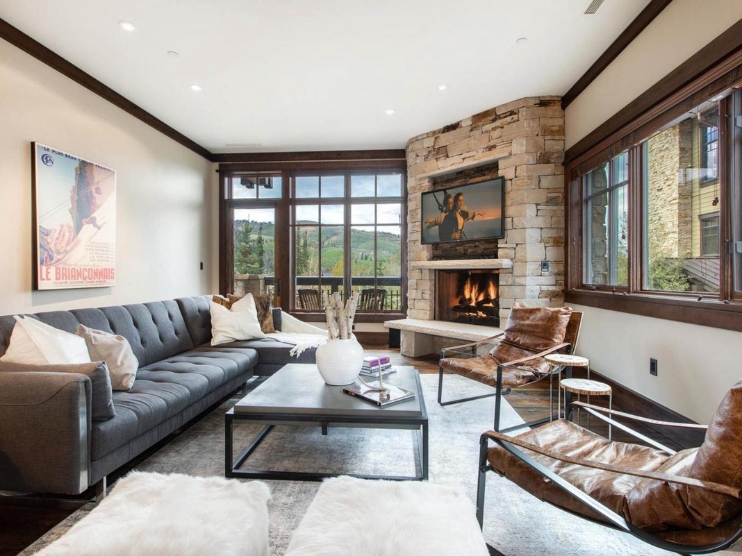 This charming condo opens with a spacious living area designed in contemporary mountain décor with a mid-century modern flair. Gather on the L-shaped sectional or settle into the 2 club chairs for an evening of delightful conversation around the gas fireplace. Step onto the furnished terrace with a morning coffee and enjoy the surrounding view of majestic mountains and swaying evergreens. The gourmet kitchen includes high-end appliances, making it easy for guests to whip up healthy homemade meals. Dig into a delicious brunch at the 6-seat dining area before catching first tracks! The breakfast bar offers 3 extra seats or a spot for quick bites. When the evening winds down, retire to the primary bedroom with a king bed and wall-to-wall picture window overlooking the mountains. A twin-over-full bunk bed provides additional accommodations in the guest bedroom. For convenience, there is a stackable washer and dryer.