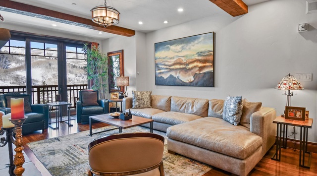 Discover a whimsical mix of mountain décor, contemporary furniture, and luxurious finishings inside this single-story condo. Whip up everything from romantic dinners to boisterous family breakfasts in the chef’s kitchen, equipped with top-of-the-line Viking appliances. The dining table has seating for 6, with an additional 2 seats at the breakfast bar. A leather L-shaped couch and 3 armchairs surround the large stone fireplace and 65” TV in the living area. Luxuriate with a quiet night by the flickering flames with cocktails or cocoa as snow dusts the mountains out the picture window! Enjoy a restorative night’s rest in both the primary and guest bedroom, each featuring a king bed, private bathroom, and Smart TV. Additionally, the primary boasts a private patio—wake each morning and step outside to the fresh mountain air!