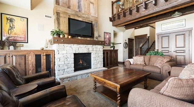 Enter this welcoming condo on the second floor. Cubbies at the entrance provide a convenient place to drop boots and outerwear. This level features a cozy armchair—perfect for a quiet night of reading—and a guest bedroom with a king bed. All the condo’s bedrooms have a TV and a private bathroom.