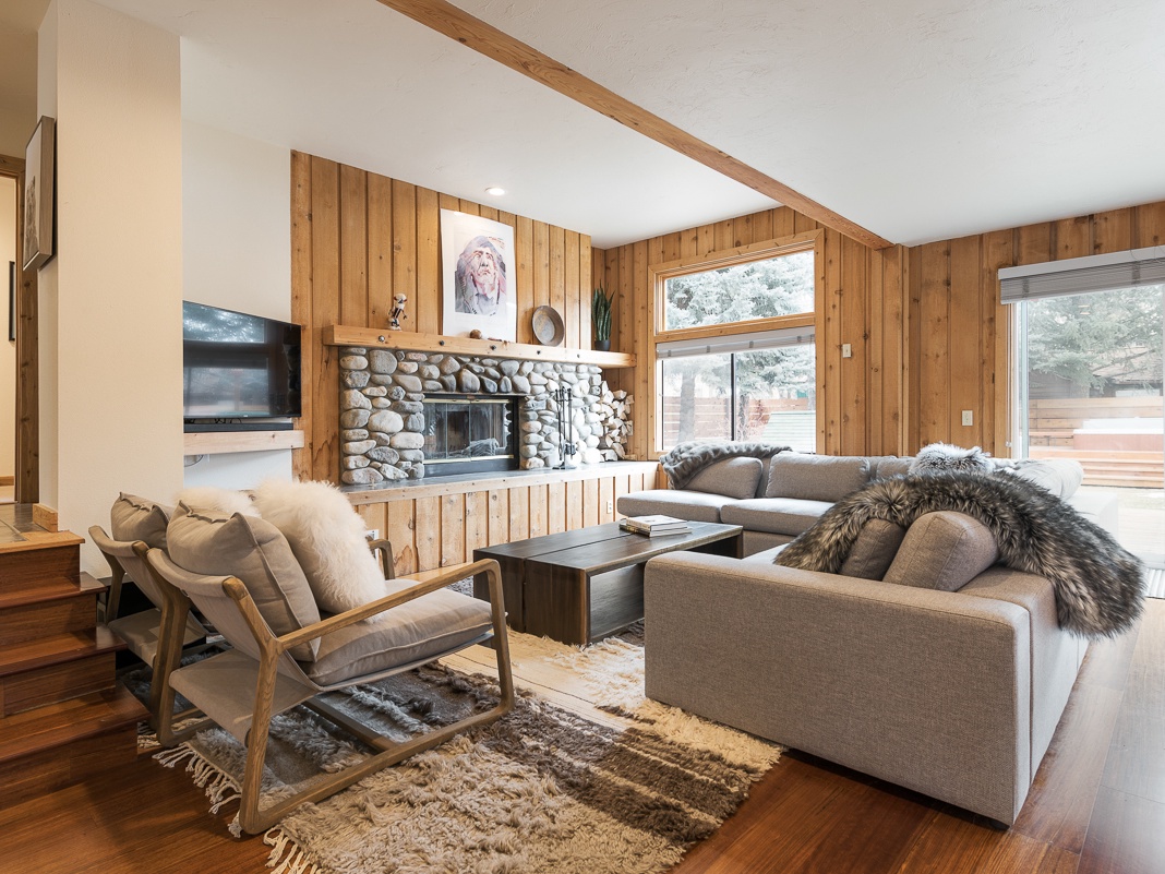 DETAILS: Get away for family-friendly fun and days of adventure! Downtown 5th Street is a chic home located in the center of downtown Ketchum. Enjoy coffee shops, restaurants, bars, boutiques, and art galleries within walking distance. This 5-bedroom, 4-bathroom home sleeps up to 10 guests and boasts multiple fireplaces, a spacious outdoor deck, private hot tub, and sauna.