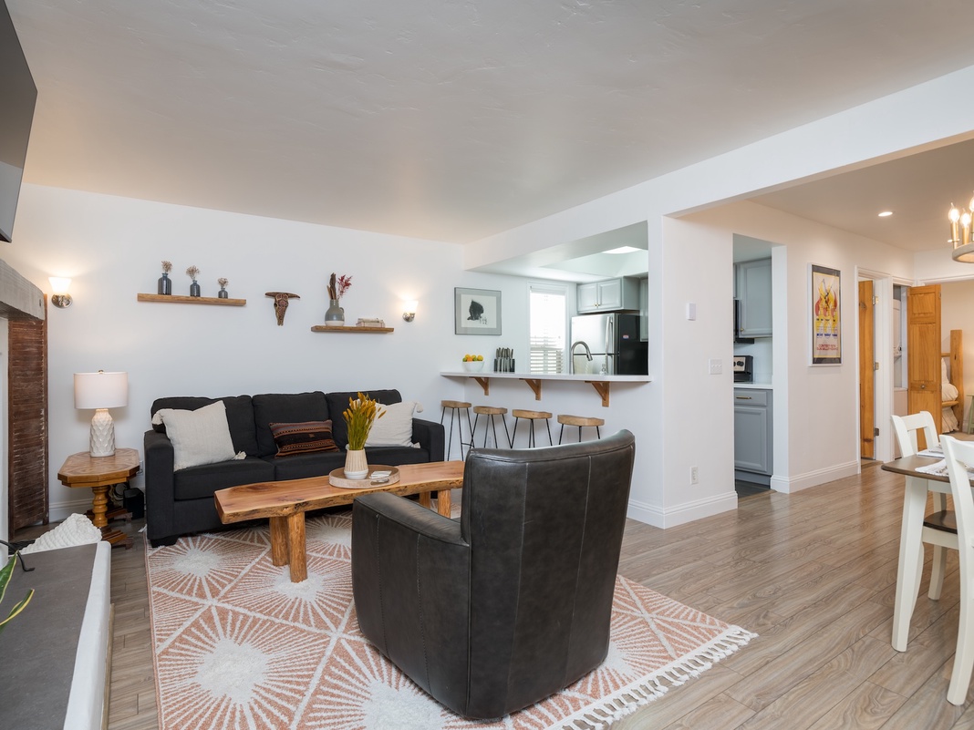 DETAILS: Get away for a charming Sun Valley vacation at River Street Refugio, a 2-bedroom, 1-bathroom Ketchum condo that sleeps 4. No need for a vehicle being a short stroll from downtown’s shops and restaurants. This property also offers easy access to the advanced terrain of Bald Mountain and the beginner-friendly slopes on Dollar Mountain. There are plenty of year-round activities, with hiking, biking, fly fishing, rafting, and even live music in Summer and Winter’s magical ice skating rinks and sleigh rides. When it’s time to relax, guests will love cozying up beside the gas fireplace or indulging in drinks on the deck.