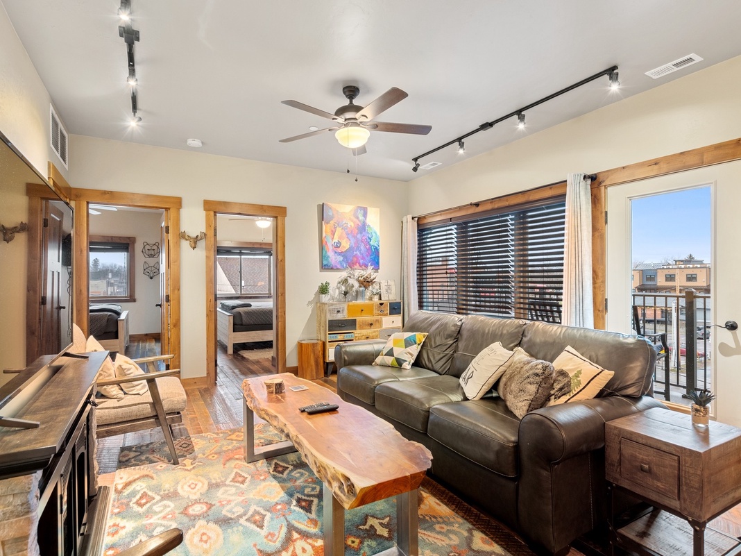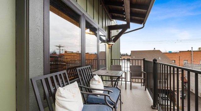 DETAILS: Baker Loft 301 is a 2-bedroom, 1-bathroom condo that sleeps 6 and enjoys beautiful views of downtown Whitefish! Guests will love the gorgeous hardwood floors, spacious balcony, and cozy interiors.