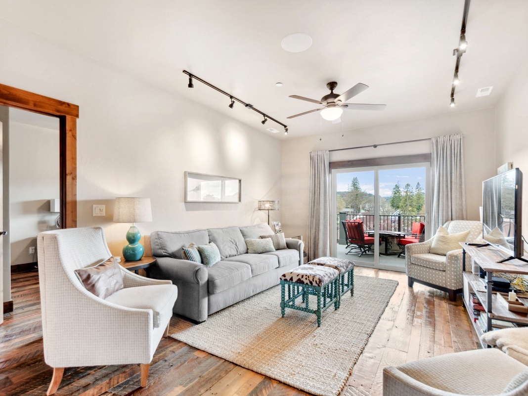 DETAILS: Baker Loft 303 is a 2-bedroom, 2-bathroom condo that sleeps 8 and enjoys beautiful views of downtown Whitefish! Guests will love the private hot tub, gas grill, and gas fire table on a spacious balcony with mountain and downtown views.