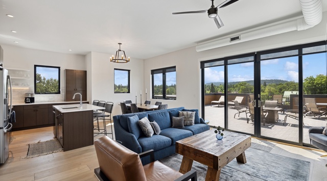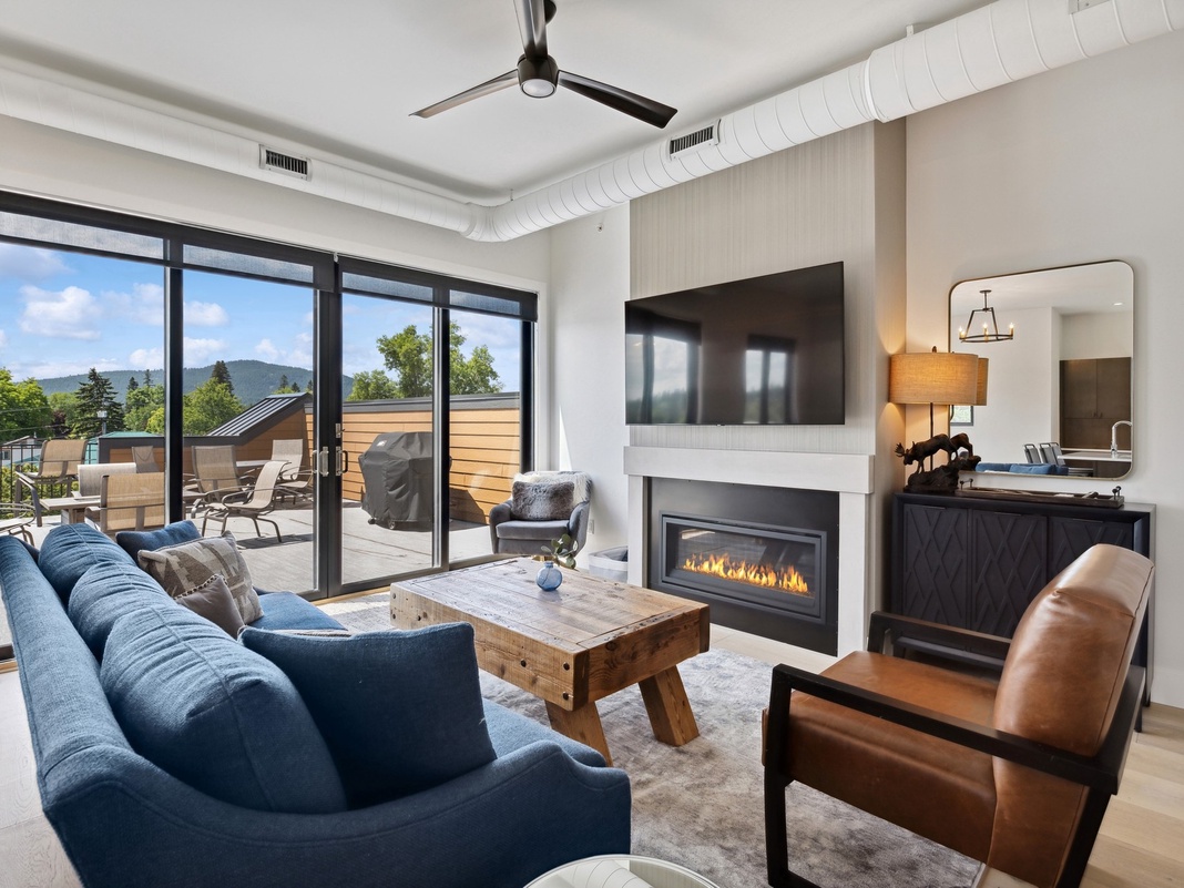 DETAILS: ViewTopia is an incredible 2-bedroom, 2-bathroom penthouse condo that sleeps 6 in the heart of downtown Whitefish. This lovely unit is within walking distance of local shops and restaurants, as well as the free S.N.O.W. Bus that takes guests to Whitefish Mountain Ski Resort. Guests will love lounging on the impressive 800-square-foot rooftop deck with a private hot tub and magnificent mountain views.