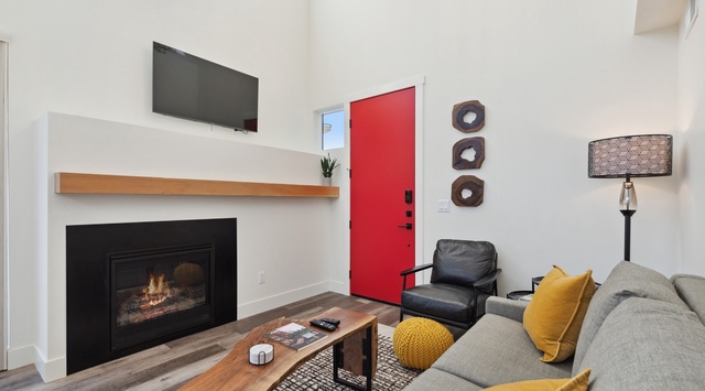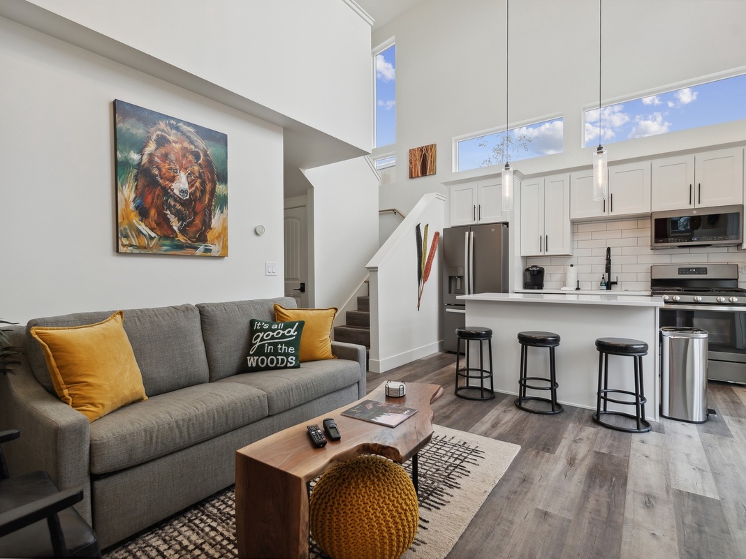DETAILS: This is a brand new home that has an open floor plan with 1000+ sqft of living space and all the comforts of home. The property comes with an inviting living room with a full-sized pull-out sofa sleeper for additional sleeping space and a large flat-screen TV, fireplace, and cozy seating for all. The open kitchen has stainless steel appliances and stunning quartz countertops with stools for additional seating. It is equipped with all the pots, pans, dishes, and utensils you will need to prepare a meal!