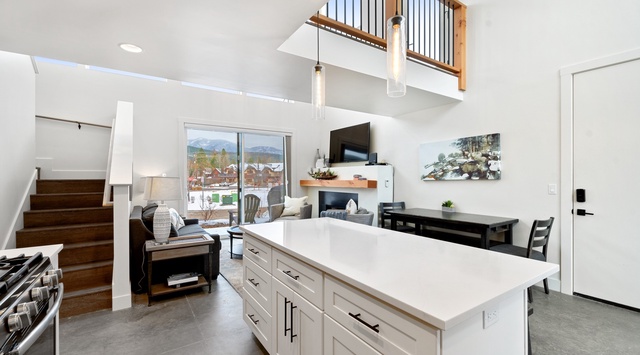 DETAILS: Quarry B3 is an extravagant 3-bedroom, 3.5-bathroom mountain-view home that sleeps 10. Located between downtown Whitefish and Whitefish Mountain Resort, this stunning property offers incredible community amenities, including a stunning clubhouse directly across the street, foosball and shuffleboard tables, seasonal pool and hot tub, exercise facility, outdoor firepit, and more. With over 1,500 square feet of living space, guests will love the second-floor deck with breathtaking alpine views, spacious bedrooms, and an open great room!