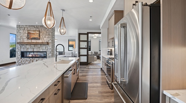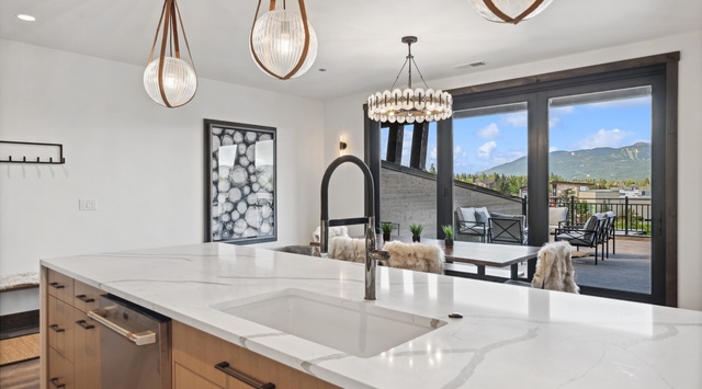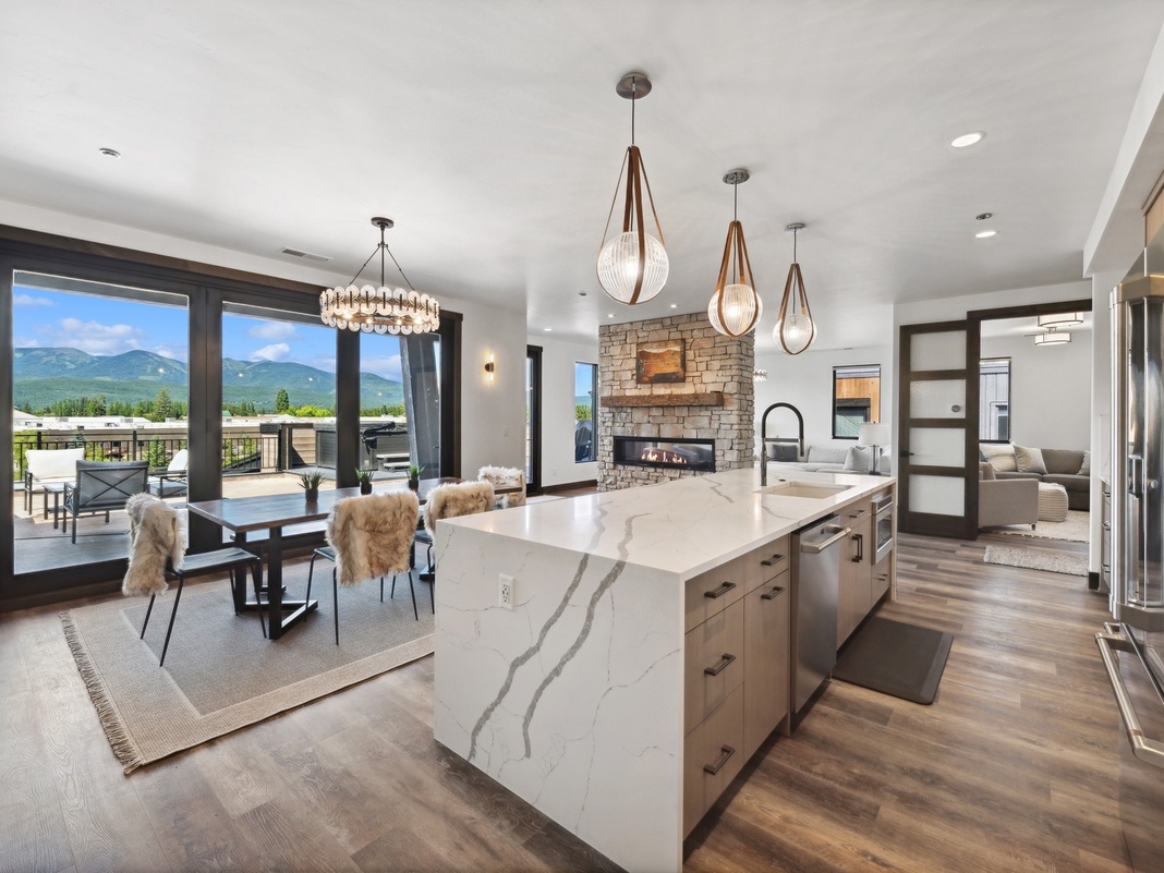 DETAILS: Introducing Grandview Escape, a luxurious newly-built penthouse nestled in Whitefish's premier development at Eagle Lake. This spacious 3-bedroom, 3.5-bathroom retreat, with over 2,147 square feet of living space, comfortably sleeps 7 with a private hot tub. Located 3 minutes from downtown Whitefish and 30 minutes from Glacier National Park, this property is part of a beautiful 6-acre community featuring communal fire pits, a playground, and exclusive dock access.