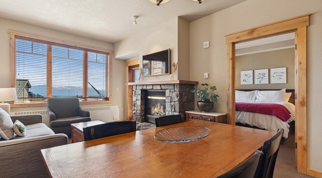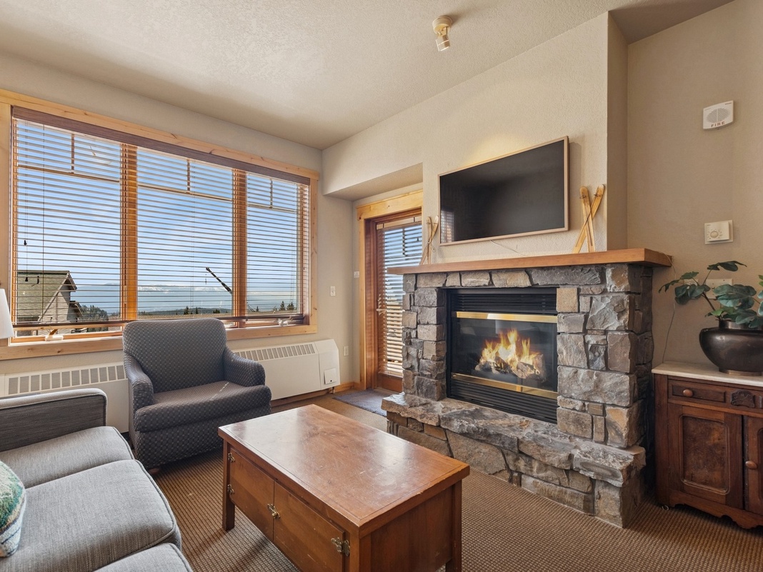 Rustic touches and wood accents feature in this welcoming and charming open condo. The kitchen is fully equipped for guests to cook up a fueling breakfast prior to hitting the slopes. Gather around the 4-person table and discuss the day’s adventures over a group meal. There is additional seating for 2 at the breakfast bar. Defrost after a day of Winter activities in front of the gas fireplace and spend a quiet night streaming a favorite movie in the living area. Out on the furnished balcony, guests will find a grill and gorgeous views of the Flathead Valley and surrounding mountains. When bedtime arrives, retire to the primary bedroom with a queen bed and television. The queen sleeper sofa in the living space provides extra sleeping options. A washer and dryer means guests can pack light!
