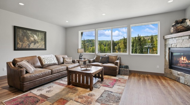 DETAILS: Pioneer Peak is a 6-bedroom, 4-bathroom ski-in/ski-out townhome that sleeps 15 with direct access to the new Snow Ghost Express chairlift. Guests will love the firepit with mountain views, a private hot tub, and the convenience of a base lodge location, which links guests to Whitefish Mountain Resort’s 3,000 acres.