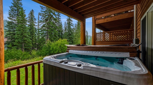 Both guest bedrooms have doors leading outside to the private hot tub patio. A stacked washer and dryer are also available for use on this floor.