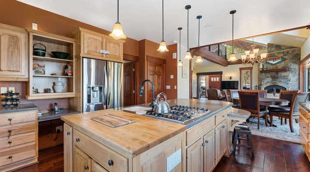 DETAILS: Sunrise Ski Haus is a gorgeous 5-bedroom, 5-bathroom ski home—with an attached apartment—that sleeps 19 in the ski-in/ski-out community of Ridge Run. Located on Big Mountain, Winter sports enthusiasts will appreciate the short walk to Base Lodge. With 3,800 square feet of living space, guests will love the expansive wraparound deck with a private hot tub and outdoor fireplace.